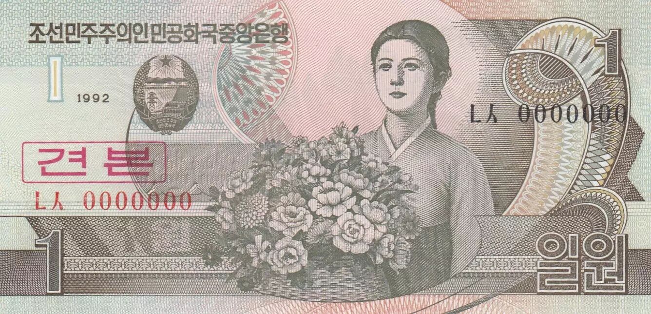 Banknote Democratic People´s Republic of Korea 1 Won Woman - 1992 - Specimen