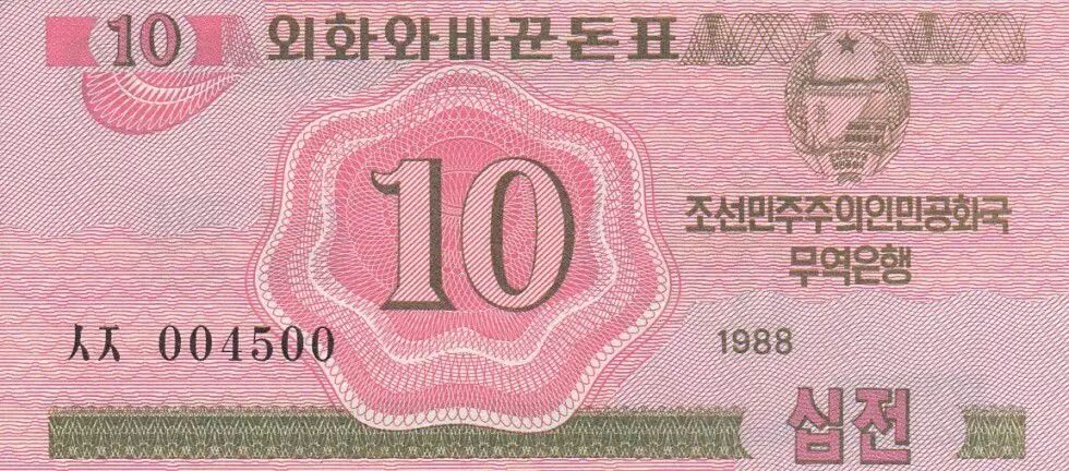 Home > World Banknotes > Asian Banknotes > North Korea > Democratic People´s Republic of Korea 10 Chon Pink - 1988