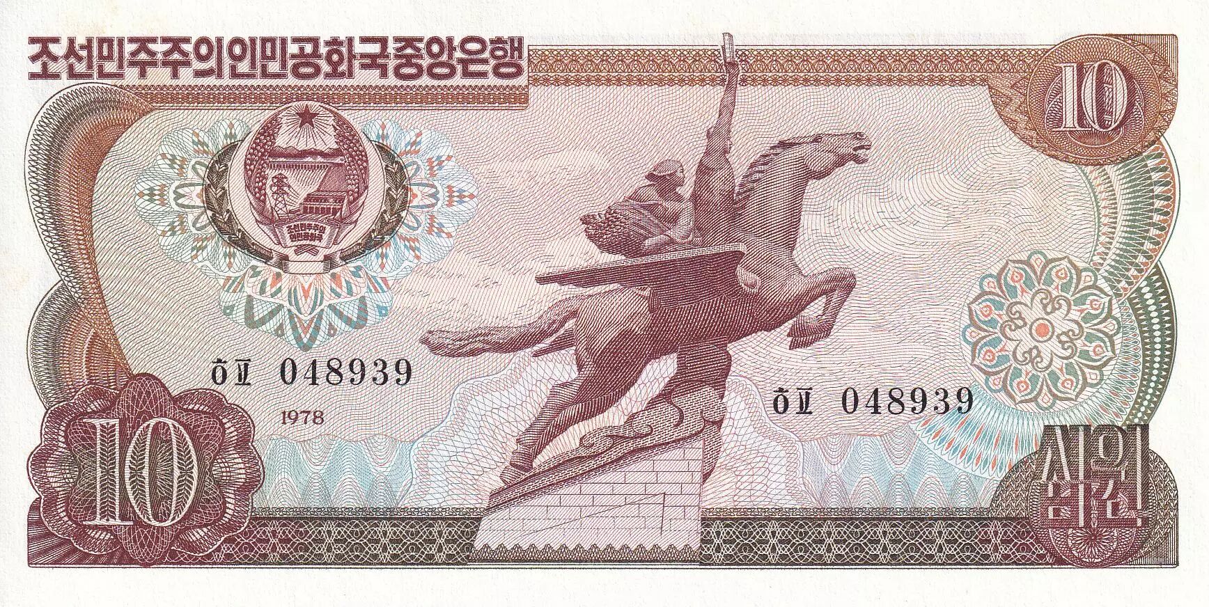 Home > World Banknotes > Asian Banknotes > North Korea > Democratic People´s Republic of Korea 10 won - Statue Chollima - Factory - 1978 - UNC - P.20e