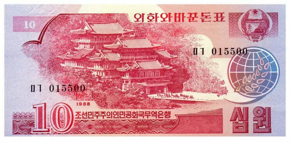 Home > World Banknotes > Asian Banknotes > North Korea > Democratic People´s Republic of Korea 10 Won Temple - 1988