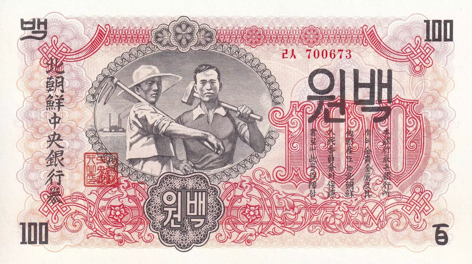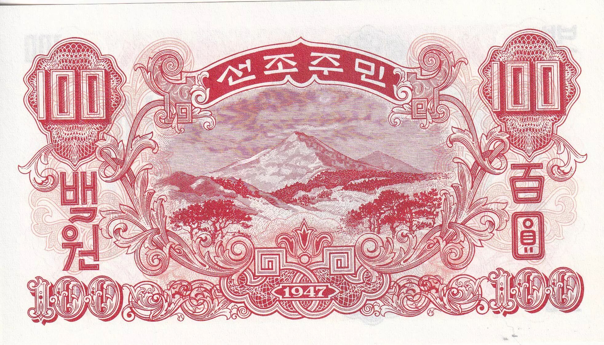 Home > > Democratic People´s Republic of Korea 100 Won - Workers - Mountains - 1947 - UNC - P.11b