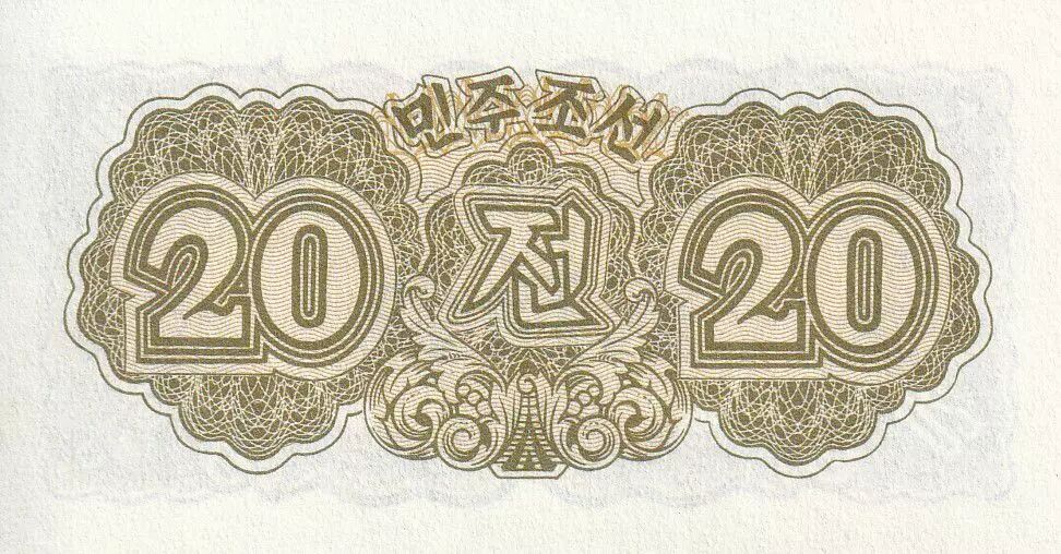 Home > > Democratic People´s Republic of Korea 20 Chon - Green and yellow - 1947 - UNC - P.6b