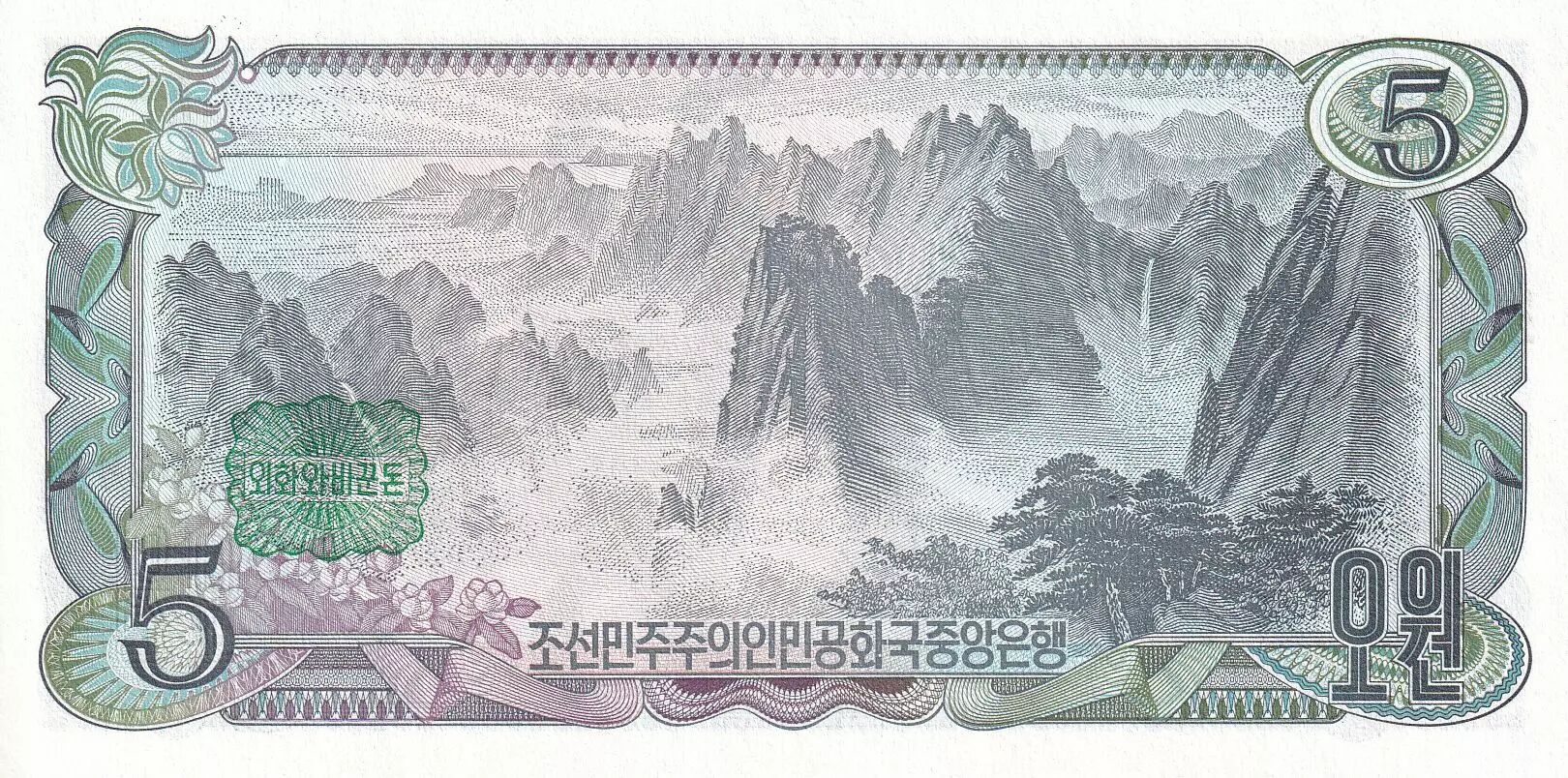 Home > > Democratic People´s Republic of Korea 5 won - Worker, farmer - Mount Gumgang - 1978 - UNC - P.19b