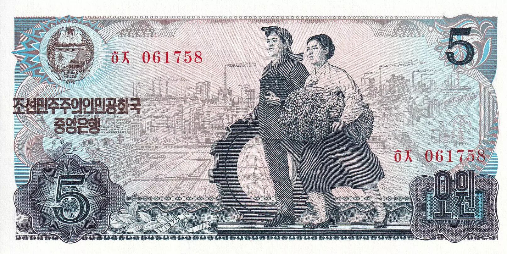 Banknote Democratic People´s Republic of Korea 5 won - Worker, farmer - Mount Gumgang - 1978 - UNC - P.19d