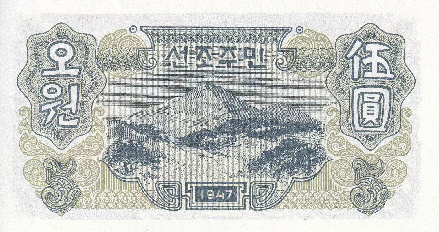 Home > > Democratic People´s Republic of Korea 5 Won - Workers - Mountains - 1947 - UNC - P.9