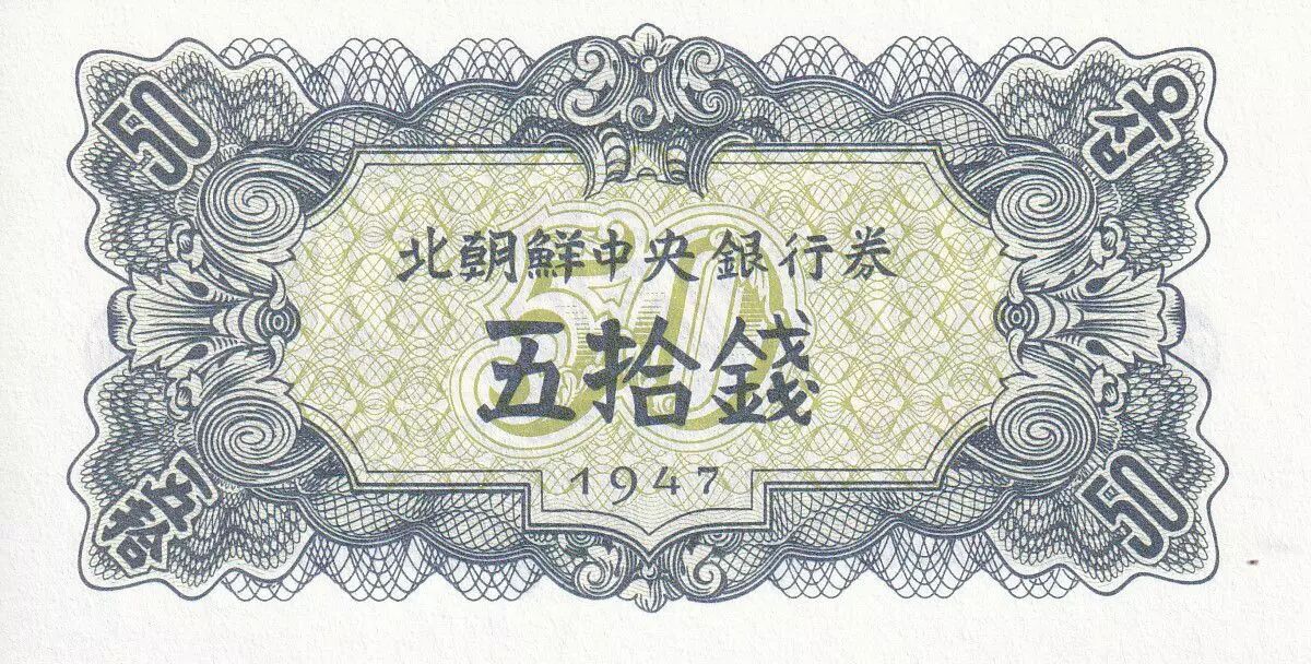 Banknote Democratic People´s Republic of Korea 50 Chon - Green and blue - 1947 - UNC - P.8b