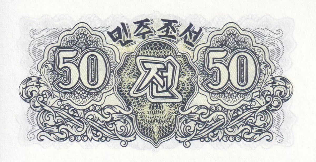 Home > > Democratic People´s Republic of Korea 50 Chon - Green and blue - 1947 - UNC - P.8b