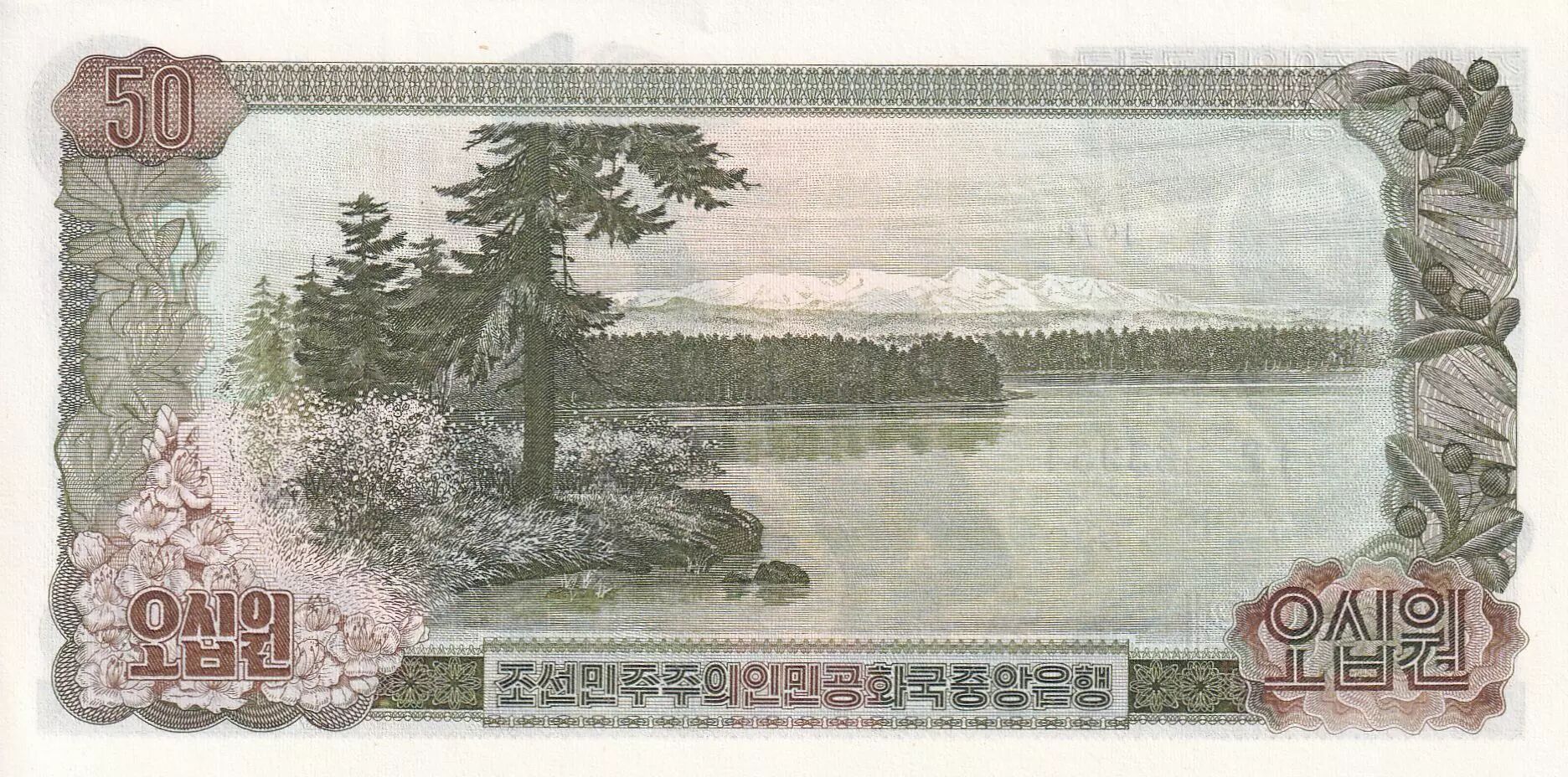 Banknote Democratic People´s Republic of Korea 50 Won - Soldier - Torch, red book - Lake - 1978 - UNC - P.21a