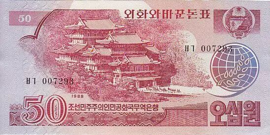 Banknote Democratic People´s Republic of Korea 50 won Temple