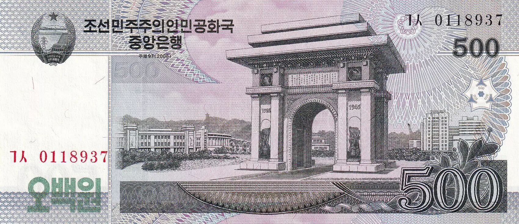 Banknote Democratic People´s Republic of Korea 500 Won - Arch - 2008 - UNC - P.63