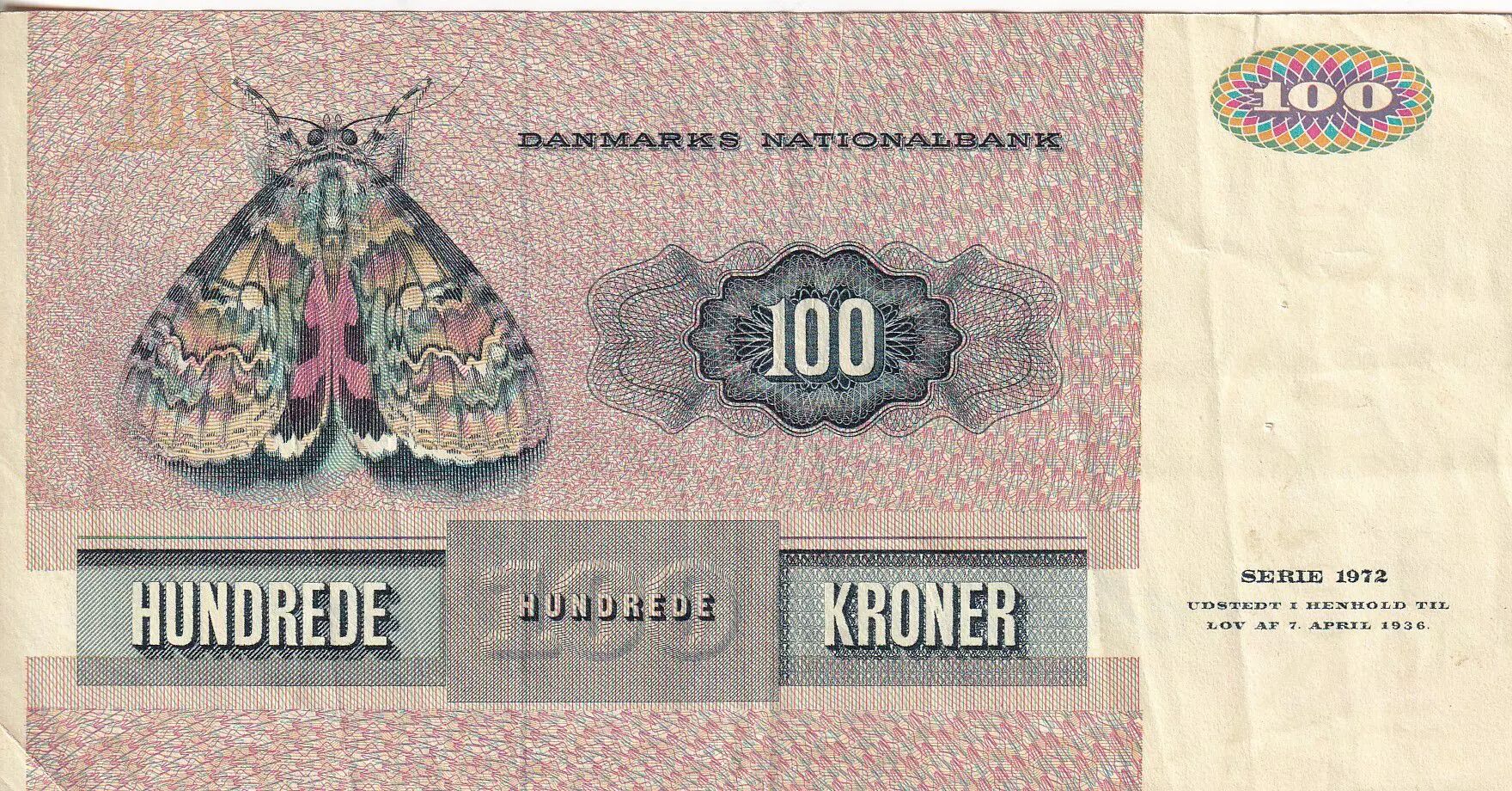 Home > > Denmark 100 Kroner - Jens Juel - Butterfly - 1991 - P.51u