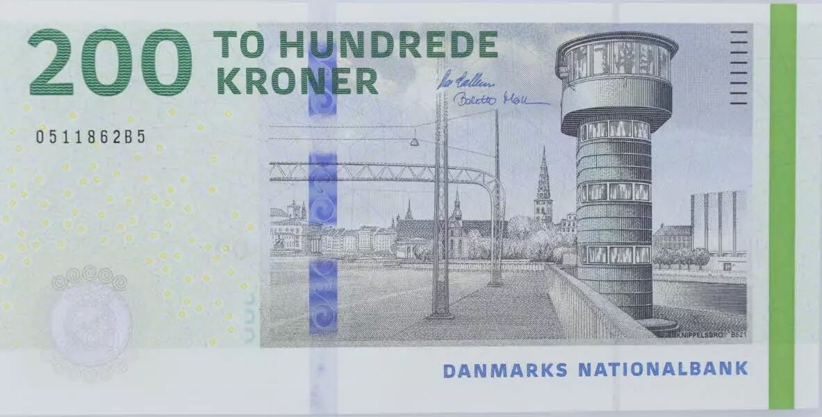 Banknote Denmark 200 Kroner - Tower - 2009A (2021-2024) - Belt buckle - Serial B5