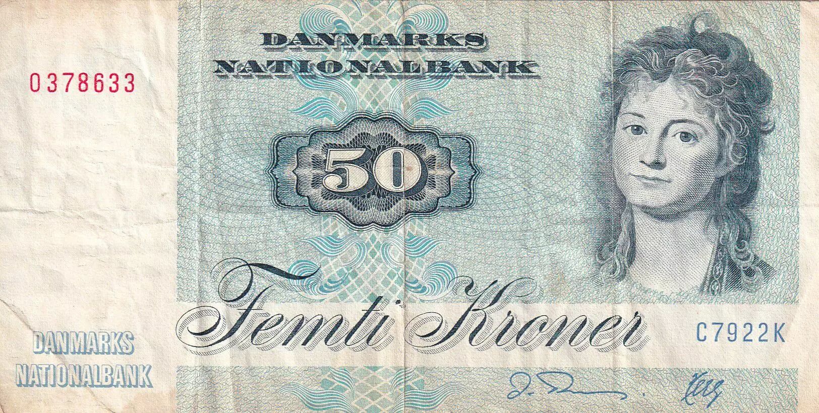 Banknote Denmark 50 Kroner - Mme Ryberg - Fish - 1992 - Serial C.7 - P.50