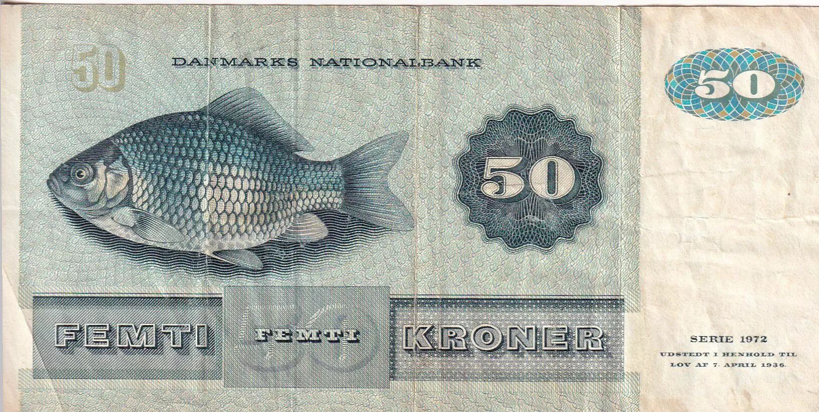 Home > > Denmark 50 Kroner - Mme Ryberg - Fish - 1992 - Serial C.7 - P.50