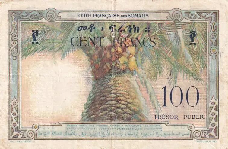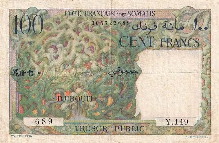 Home > > Djibouti 100 Francs Coral - ND (1952)- Serial Y.149