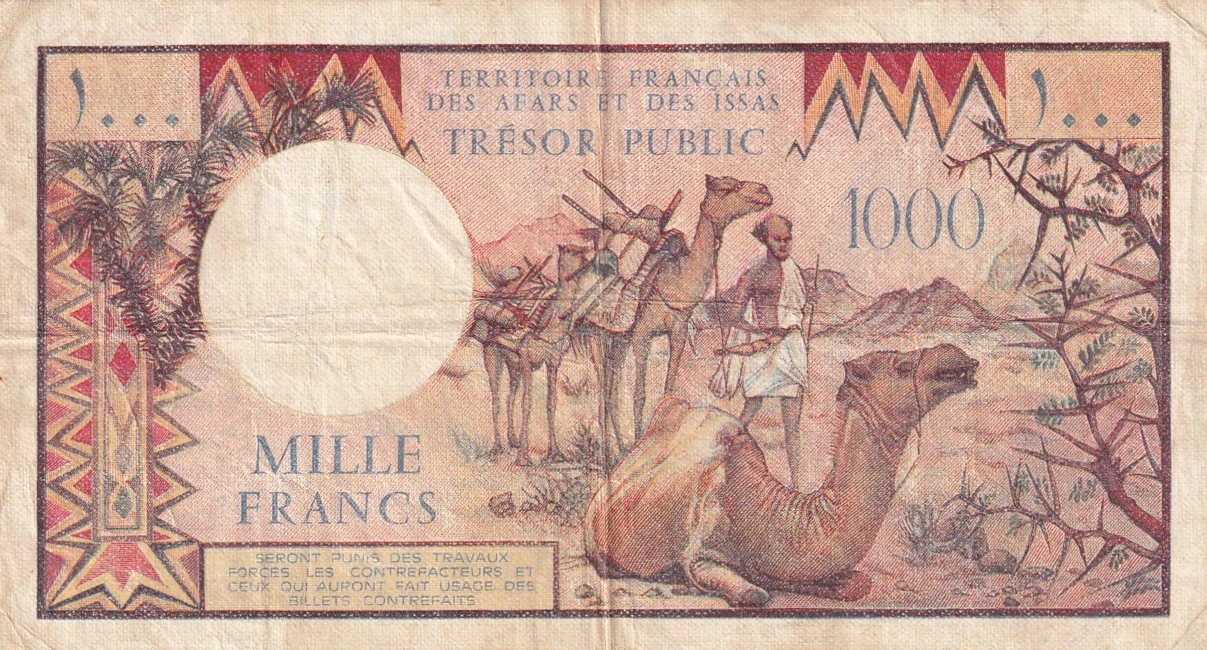 The banknote weighs one gram. The face value is clearly indicated as 1000 francs, the monetary unit of Djibouti.