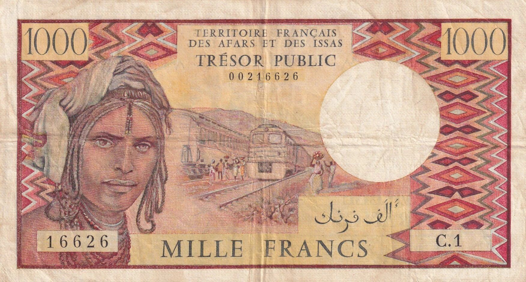 Ce billet de banque représente une coupure de 1000 francs émise à Djibouti, avec une période d'émission s'étendant de 1979 à 2005. Il appartient à la Série C.1.