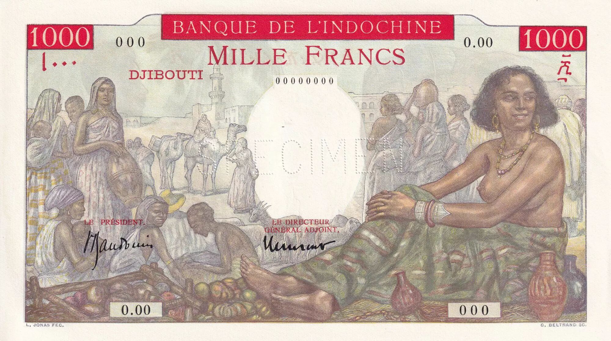 Home > > Djibouti 1000 Francs - Woman seated - Specimen - 1938 - UNC - P.10s