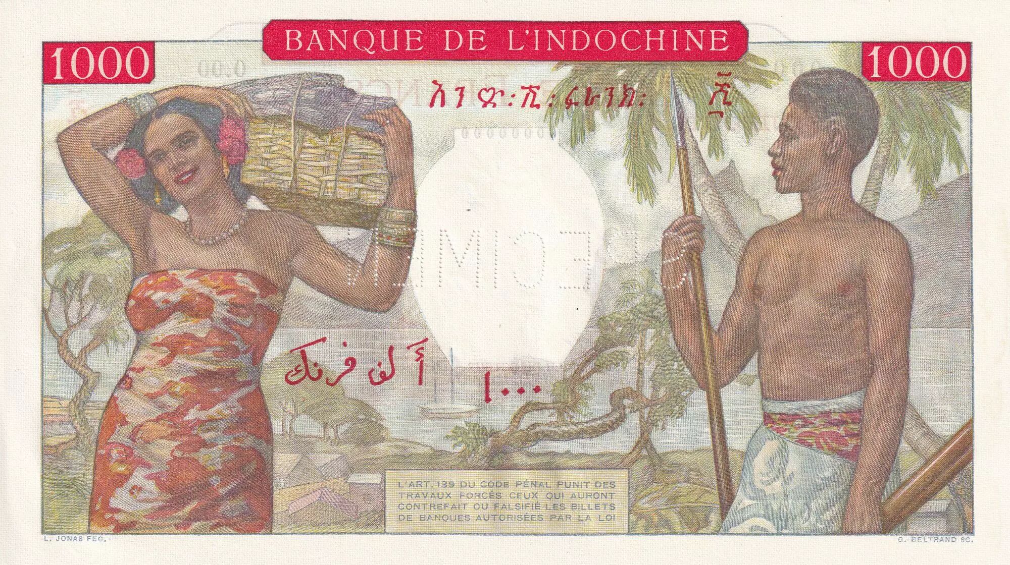 Banknote Djibouti 1000 Francs - Woman seated - Specimen - 1938 - UNC - P.10s