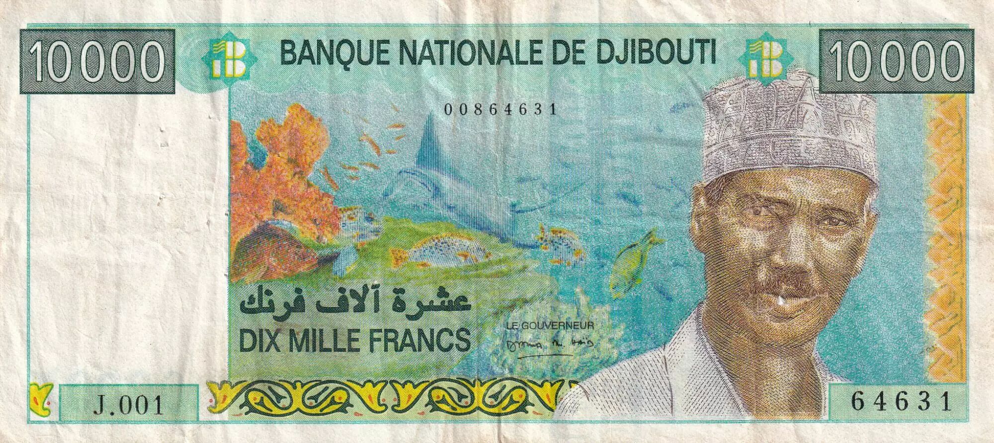 Billet Djibouti 10000 Francs - Hassan G. Aptidon - ND (1999) - Série J.001 - P.41