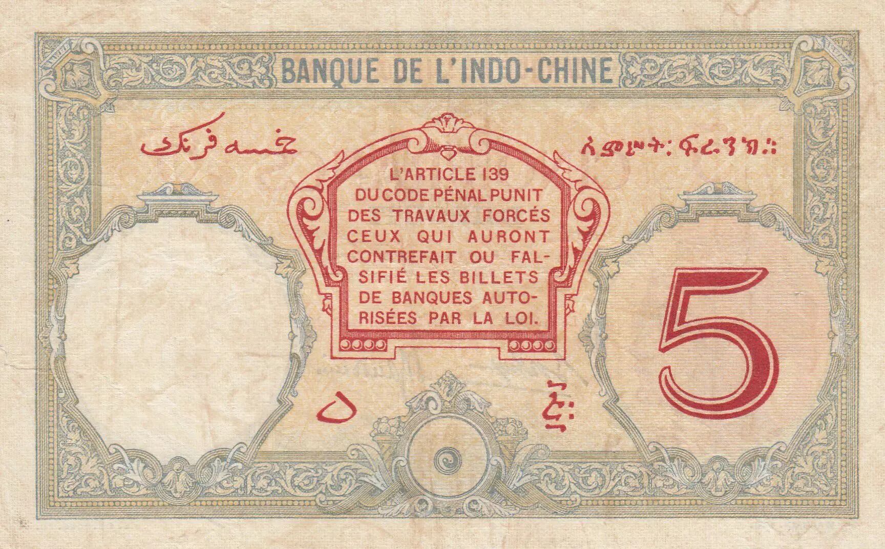 Accueil > Archivage > Djibouti 5 Francs Walhain - 1938 - P.6b - TB + - Série U.62