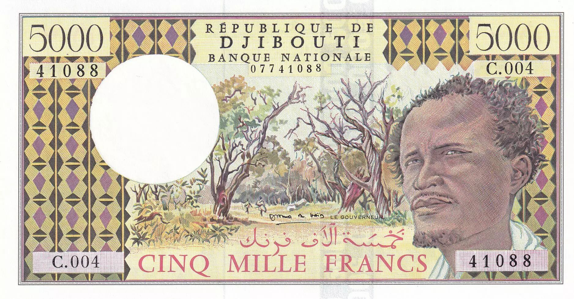 Billet Djibouti 5000 Francs - Berger, forêt - Port - 1979 - Série C.004 - P.38d