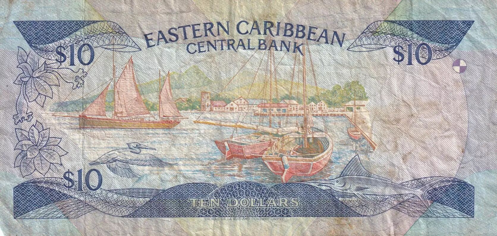 Home > > East Caribbean States 10 Dollars - Elizabeth II - Boat, landscape - ND (1985) - Suffix L