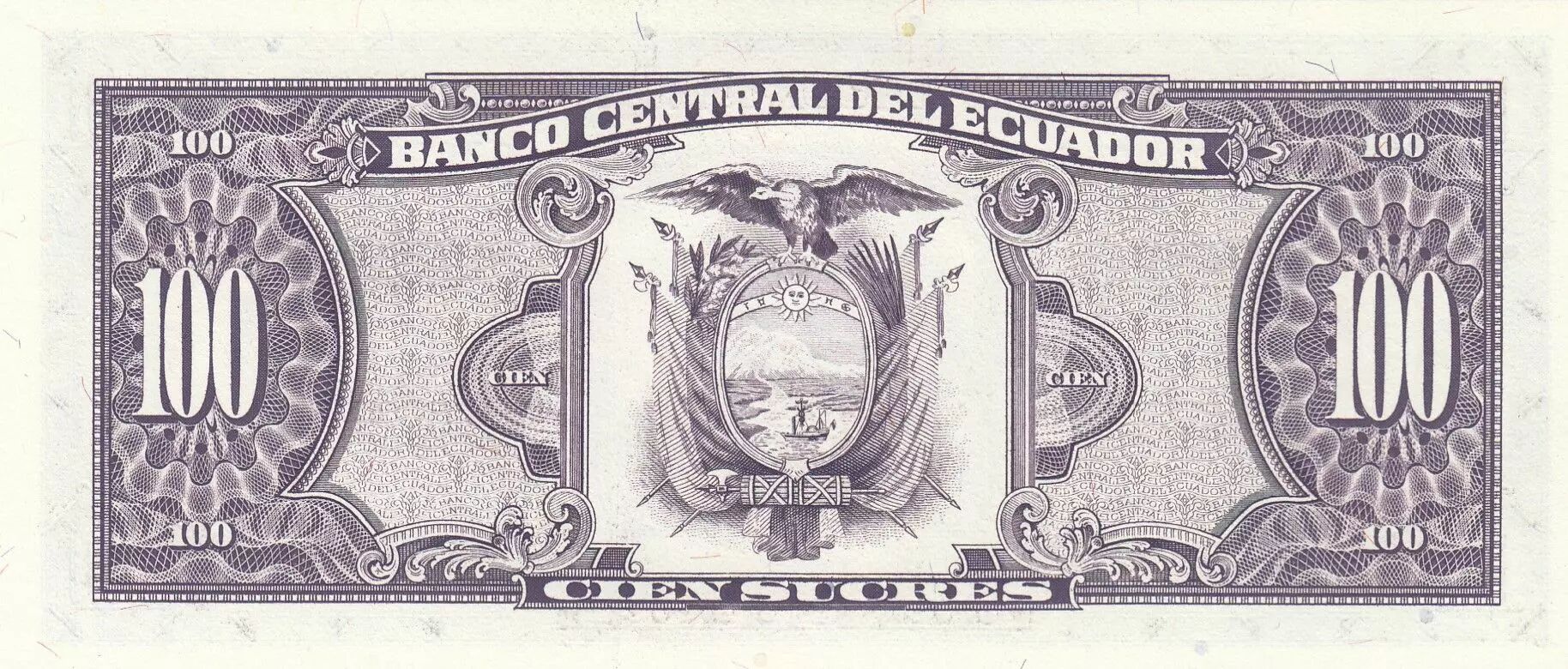 Home > > Ecuador 100 Sucres - Simon Bolivar - coat of arms - 21-06-1991 - Serial WA