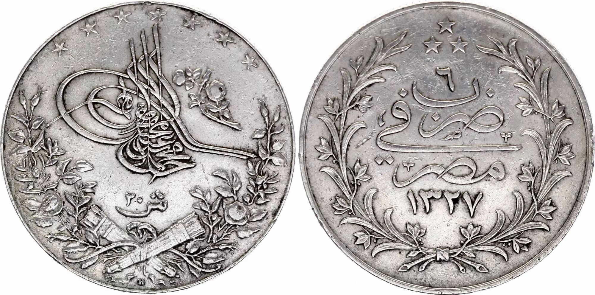 Coin Egypt 20 qirsh, Muhammad V - 1327/6