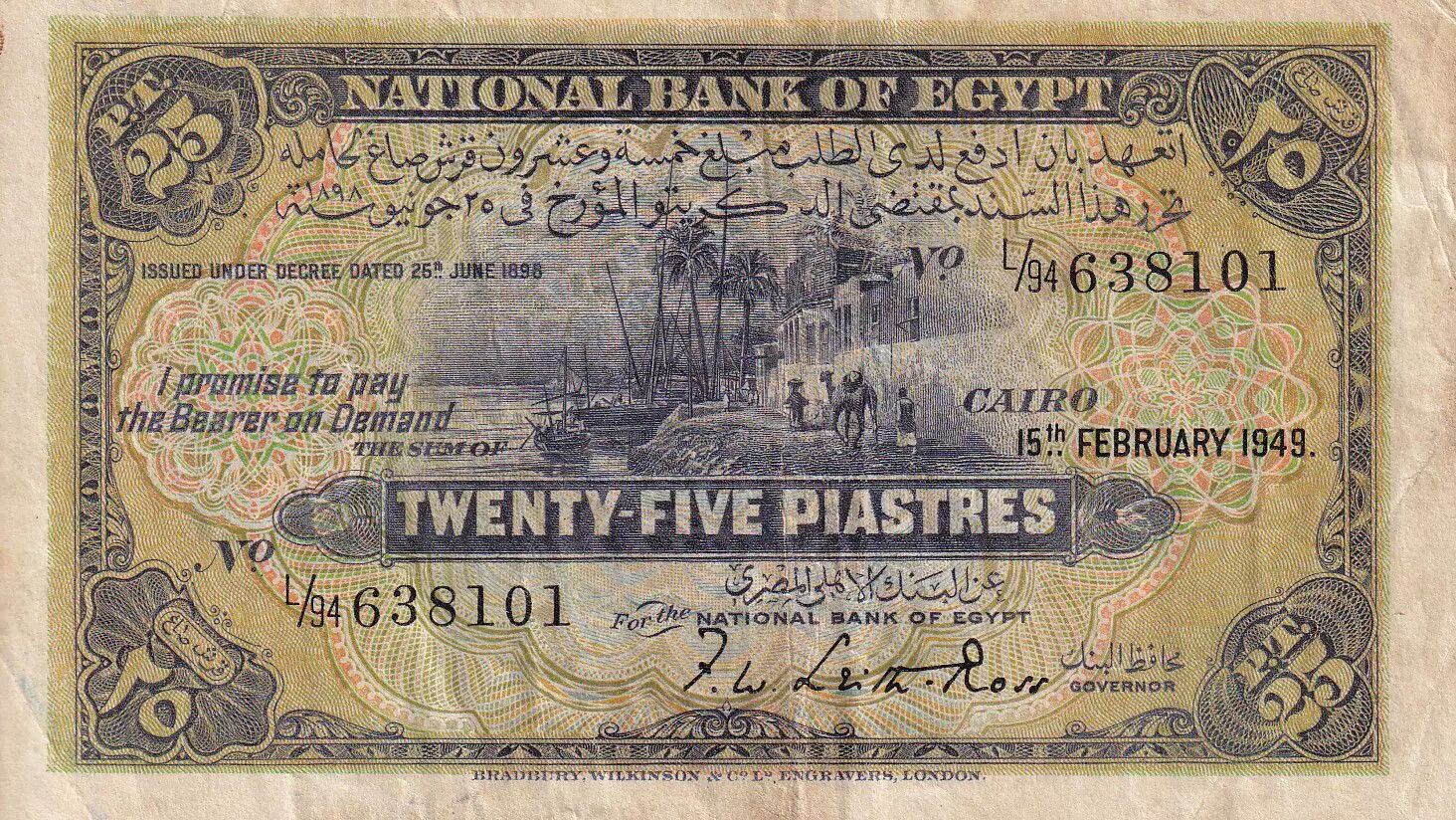 Banknote Egypt 25 Piastres - Harbor - 1949 - VF - P.10d