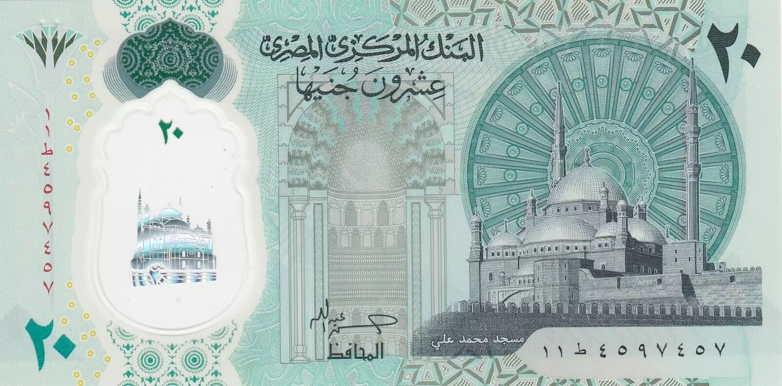 Billet Egypte 20 Pounds Mosquée Ali Pasha - Ramses II - Cléopatre - Polymer - 2023