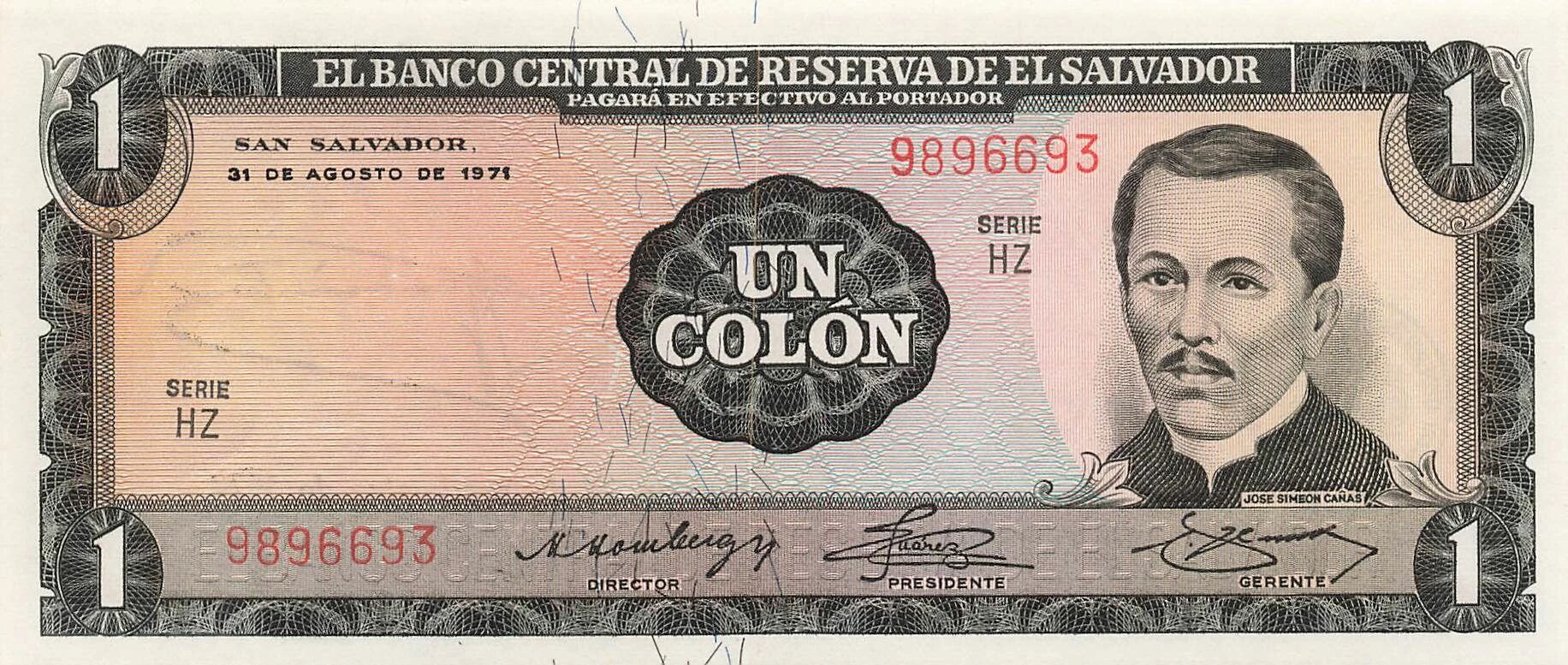 Accueil > Billets du Monde > Billets d'Amérique > Salvador > El Salvador 1 Colon - 1972 - P.115