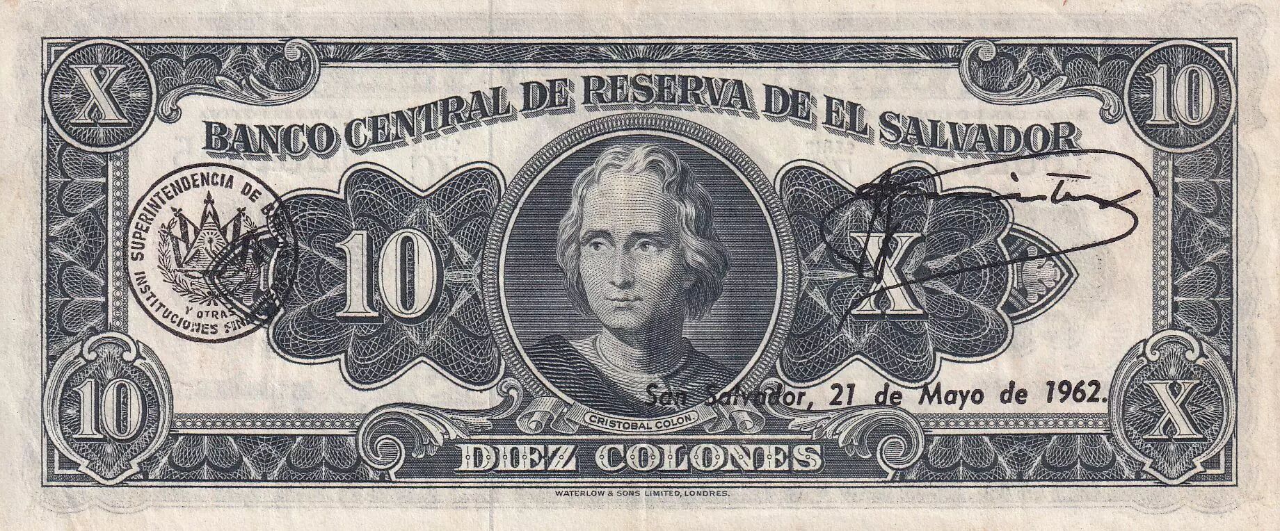 Home > > El Salvador 10 Colones - Manuel J. Arce - C. Colomb - 1959 - Serial ZC - P.99