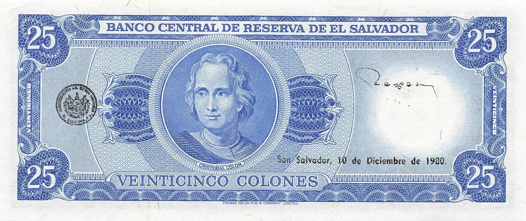 Accueil > Billets du Monde > Billets d'Amérique > Salvador > El Salvador 25 Colones - 1980 - P.130