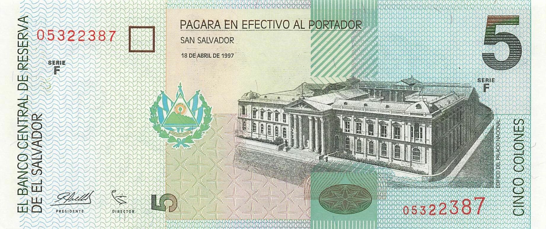 Accueil > Billets du Monde > Billets d'Amérique > Salvador > El Salvador 5 Colones - 18-04-1997 - P.147