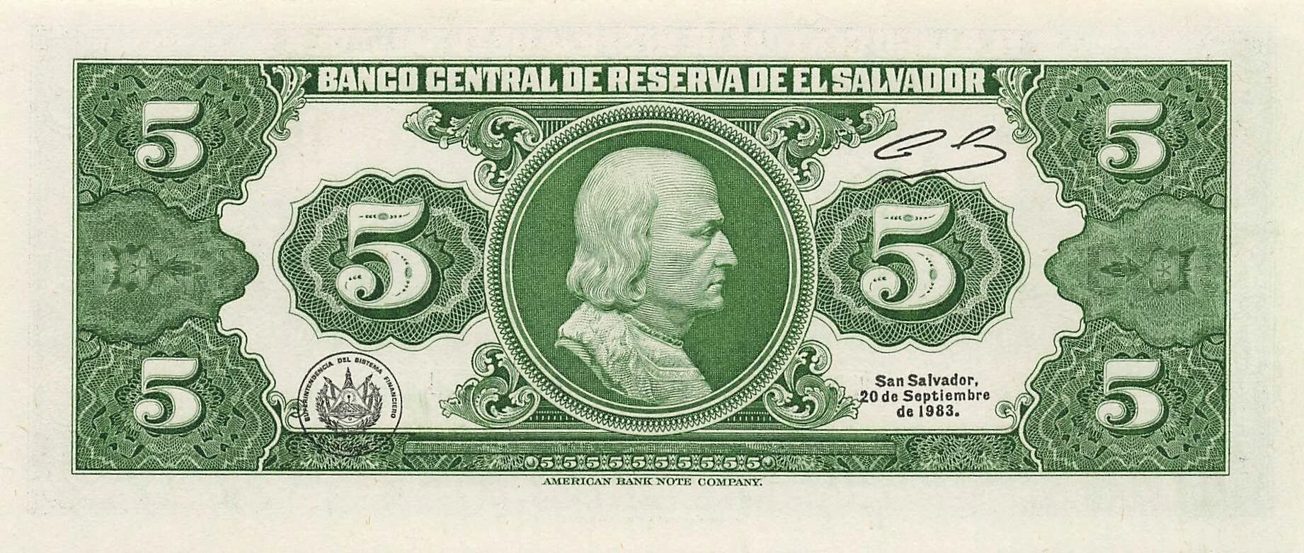 Accueil > Billets du Monde > Billets d'Amérique > Salvador > El Salvador 5 Colones - 1983 - P.134