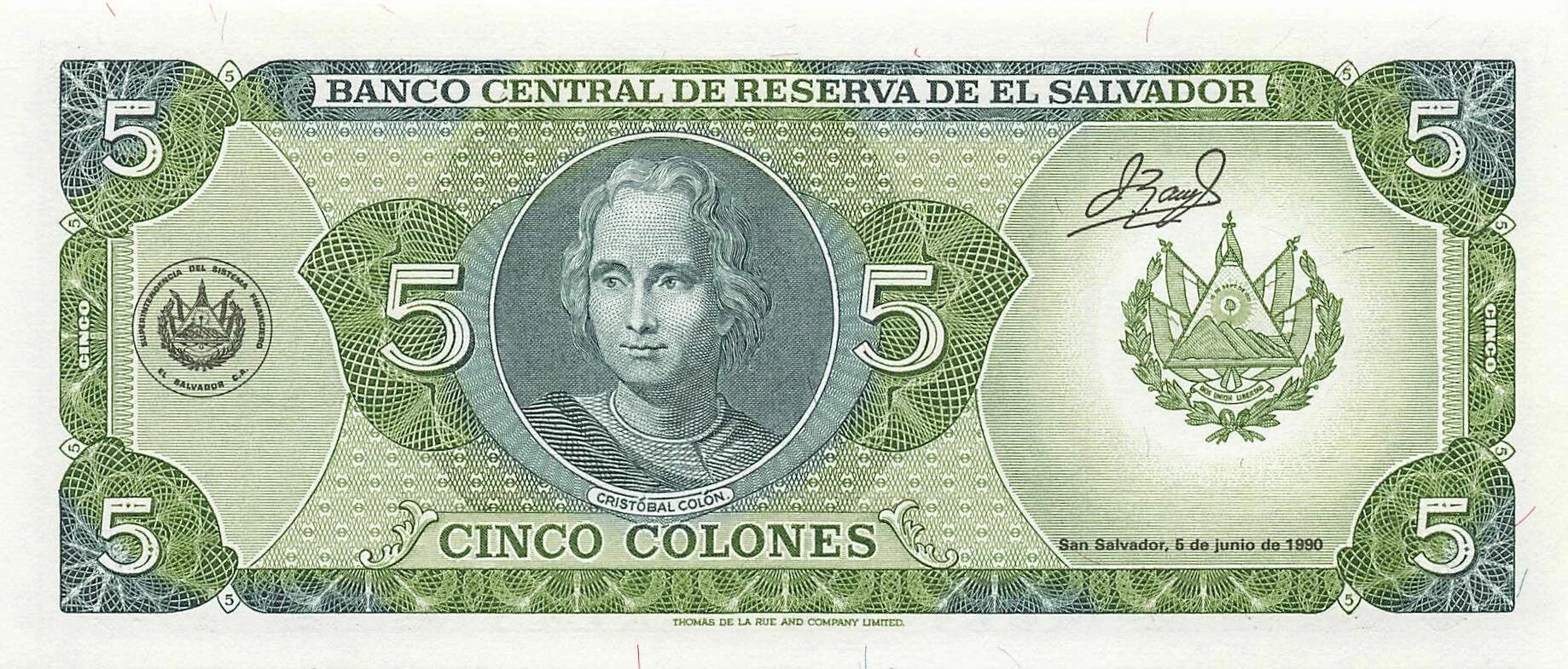 Accueil > Billets du Monde > Billets d'Amérique > Salvador > El Salvador 5 Colones - 1990 - P.138