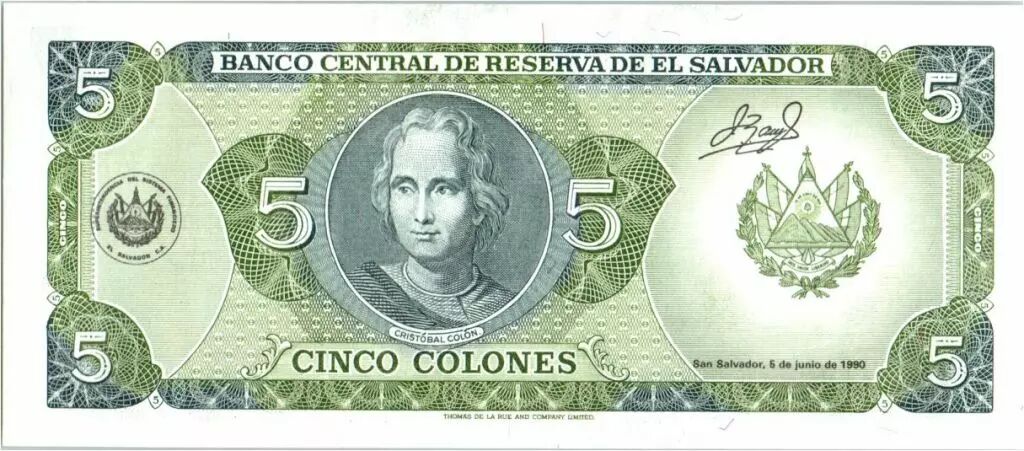 Accueil > Archivage > archivage-Billets du Monde > El Salvador 5 Colones Delgado - C. Colomb - 1990
