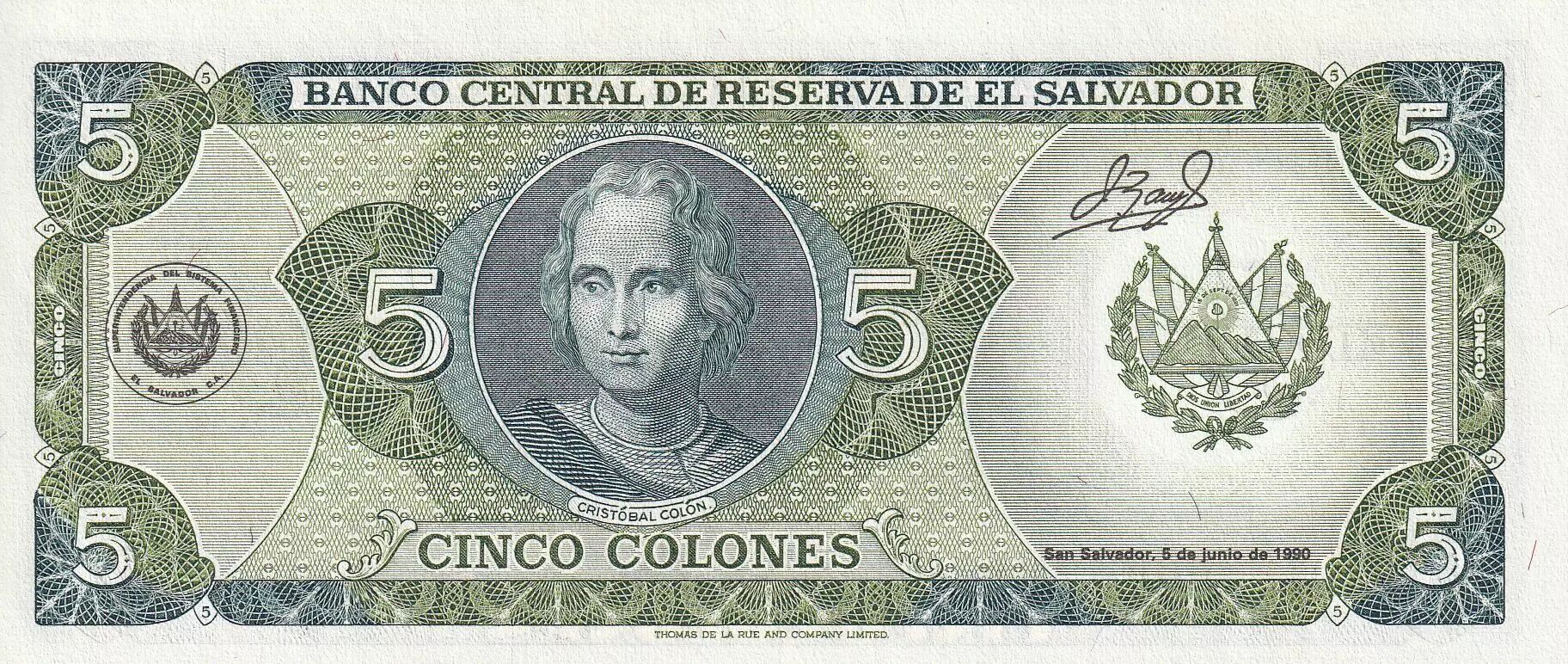 Accueil > Archivage > El Salvador 5 Colones - J.M. Delgado - C. Colomb - 1999 - P.138a