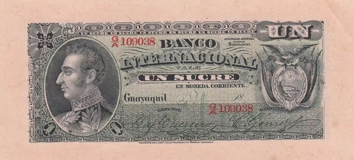Billet Equateur 1 Sucre - Antonio José de Sucre - Série GA - 18(86-94)