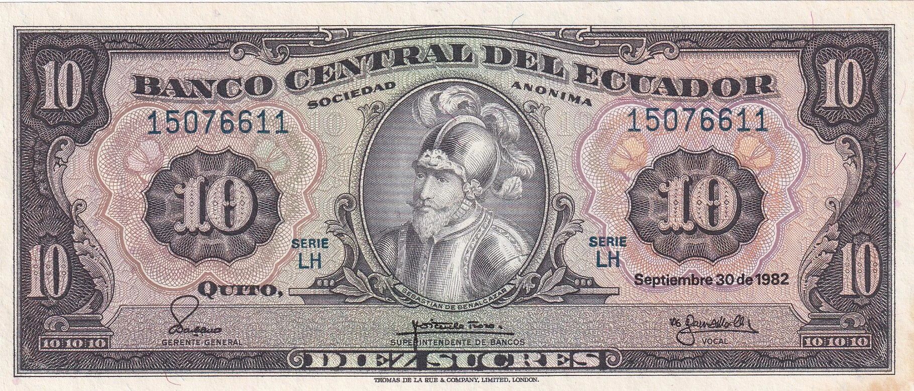 Ce billet de banque équatorien, d'une valeur nominale de 50 sucres, a été émis en 1982. Il fait partie de la série LH et commémore Sebastian de Benalcazar, une figure historique importante de l'Équateur. Ses dimensions sont de 156 millimètres de longueur sur 68 millimètres de largeur.