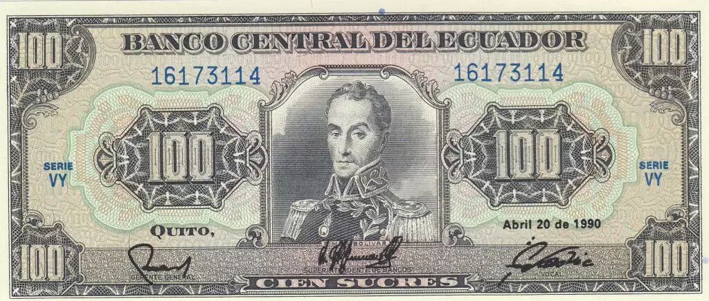 Billet Equateur 100 Sucres 1990 - Simon Bolivar