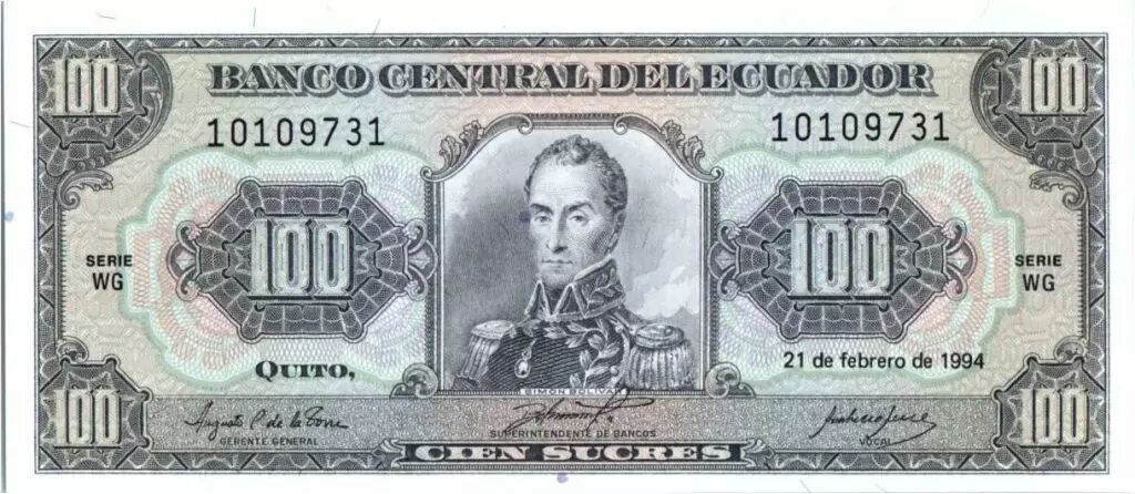 Billet Equateur 100 Sucres Simon Bolivar - 1994