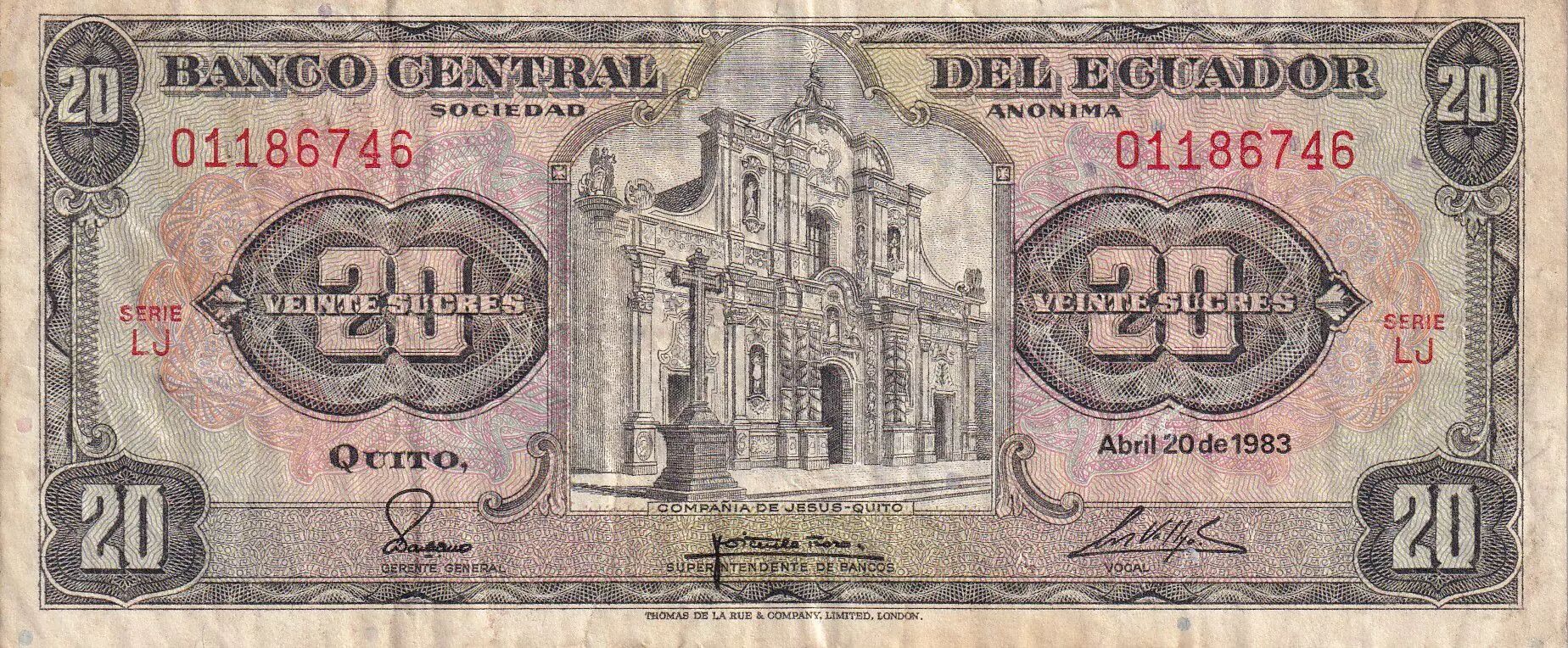 Billet Equateur 20 Sucres - Compagnie de Jésus - Condor - 1982 - Série LJ - TTB - P.115b