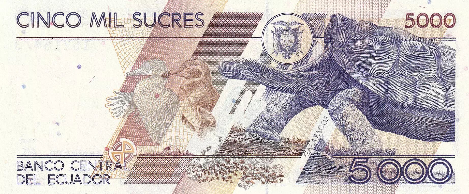 Accueil > Archivage > Equateur 5000 Sucres - Juan Montalvo - Tortue - 1999 - P.128c