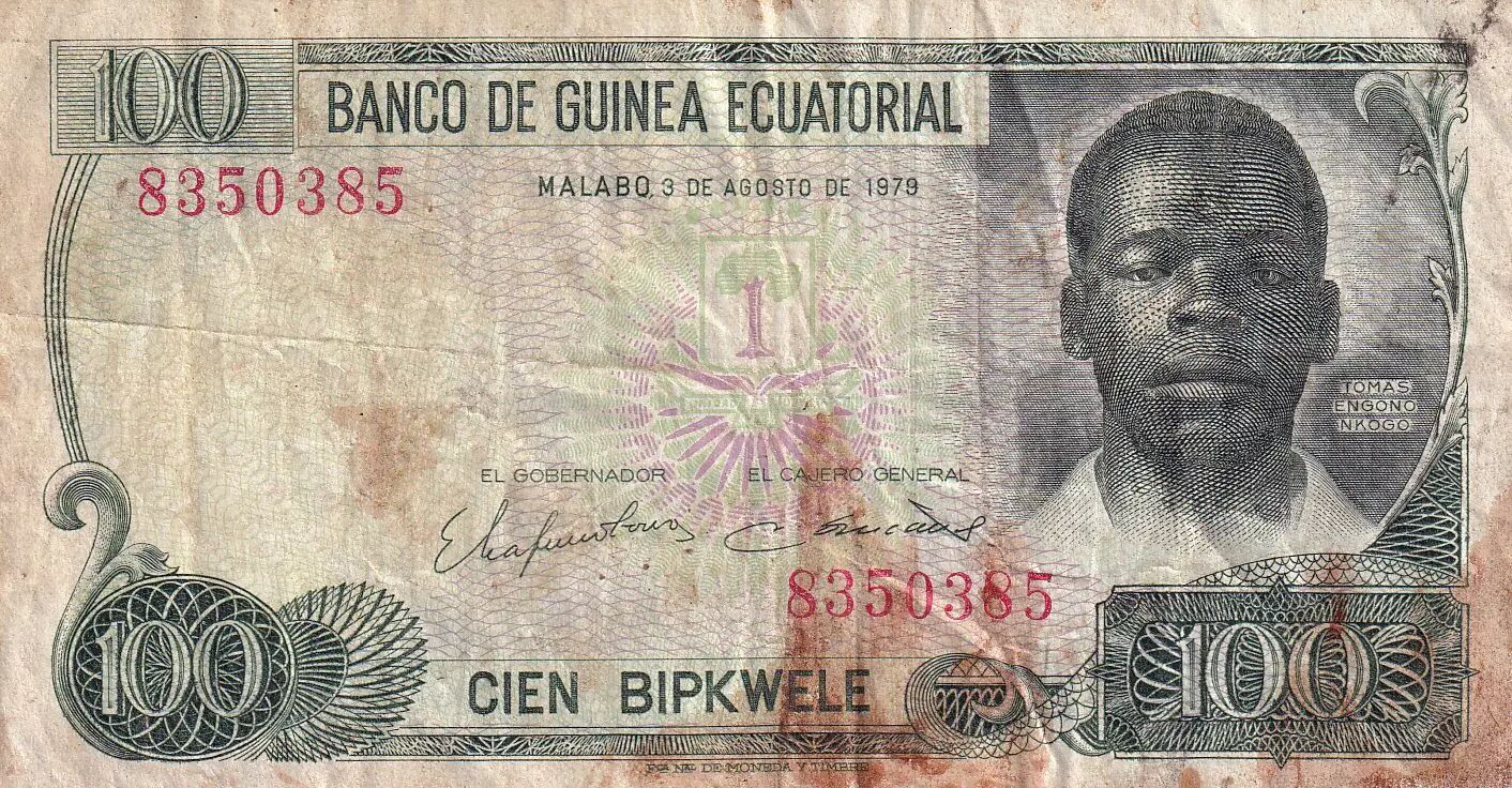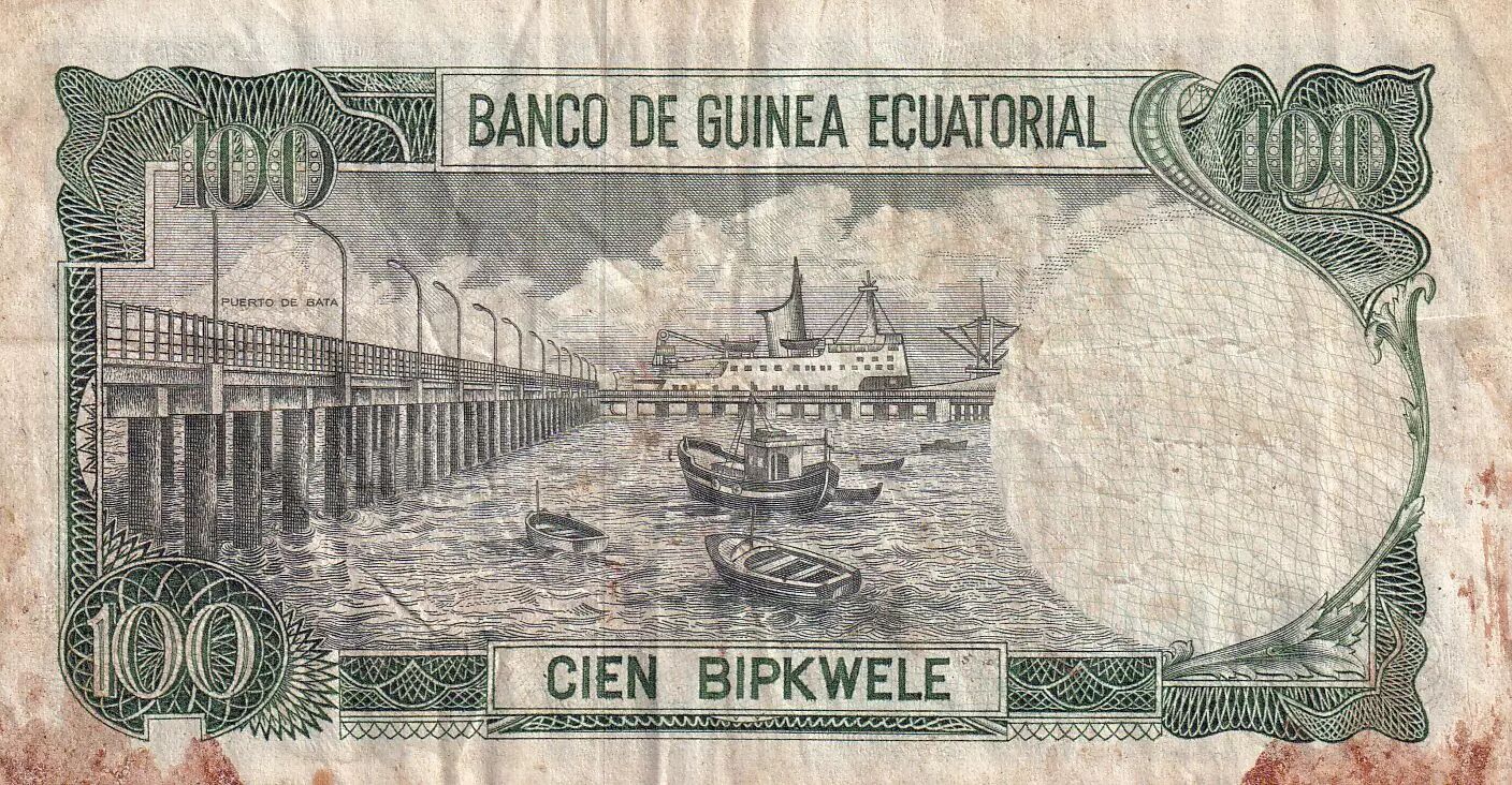 Banknote Equatorial Guinea 100 Bipkwele - Tomas E. Nkogo - Harbor & Boats - 1979 - P.14