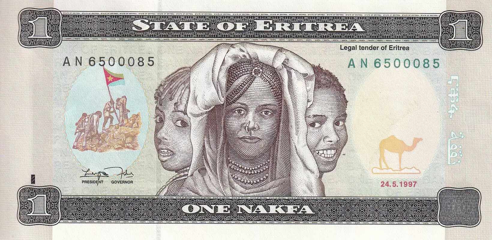 Banknote Eritrea 1 Nakfa - Three Girls - Children in bus school - 1997 - Serial AN - P.1