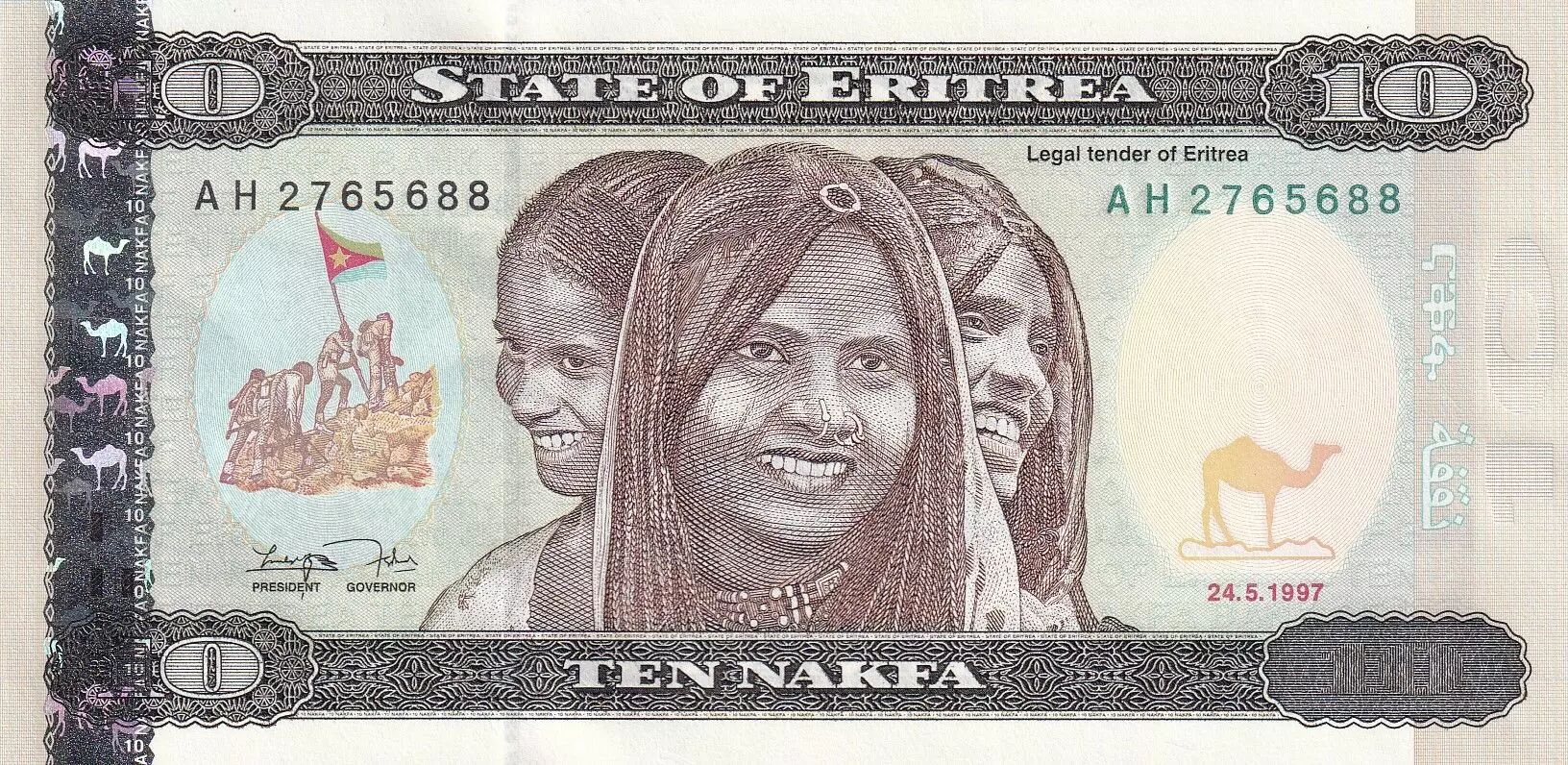 Billet Erythrée 10 Nakfa - Trois filles - Pont - 1997 - Série AH - P.3