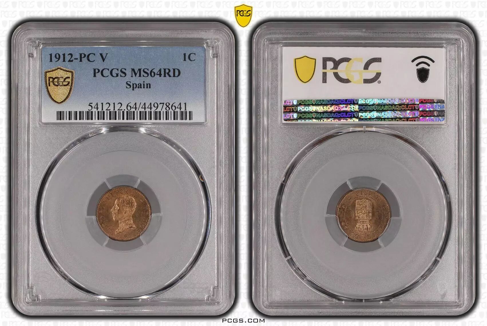Pièce Espagne 1 centimo - Alfonso XIII - 1912 - PCGS MS 64RD