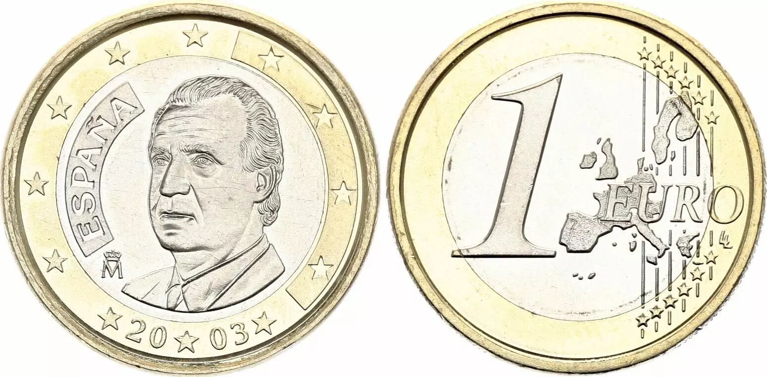 La pièce de 1 Euro de l'Espagne, émise en 2003 avec l'effigie de Juan Carlos I, est un exemple de la monnaie fiduciaire utilisée dans la zone euro. Elle témoigne de l'histoire et de la culture de l'Espagne, tout en servant de moyen d'échange économique au sein de l'Union européenne.